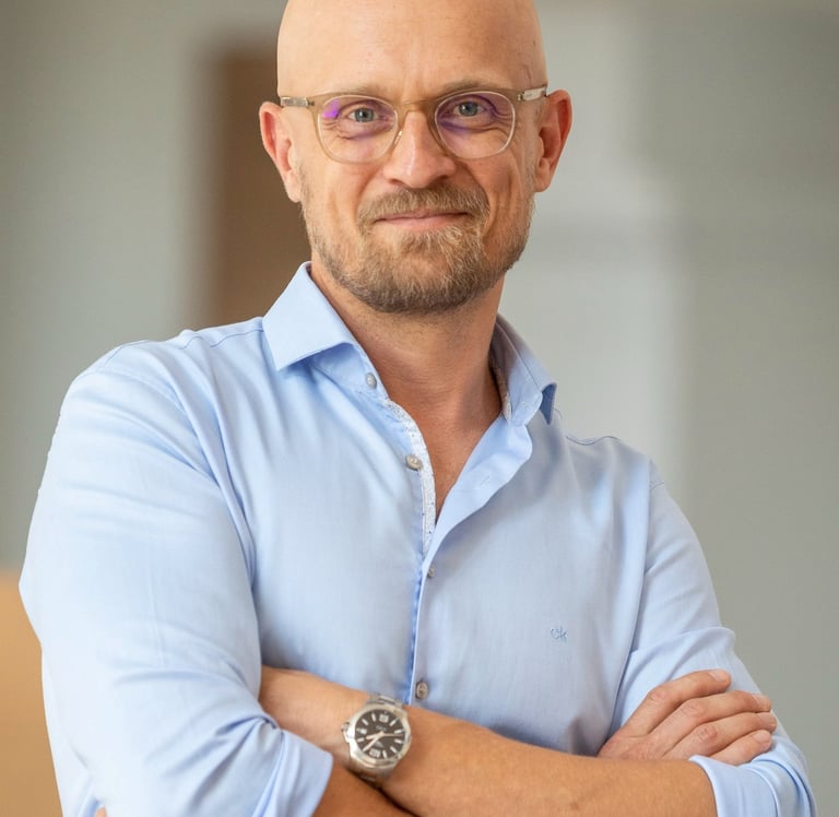 Dennis ist der Technik-Profi- Er bringt sein Know-how aus KI-Implementierung und digitaler Transformation ins Team ein. Mit Erfahrung aus Industrie 4.0, Datenanalyse und Robotik unterstützt er die Entwicklung von Custom GPTs und Mensch–KI-Interaktionsservices.